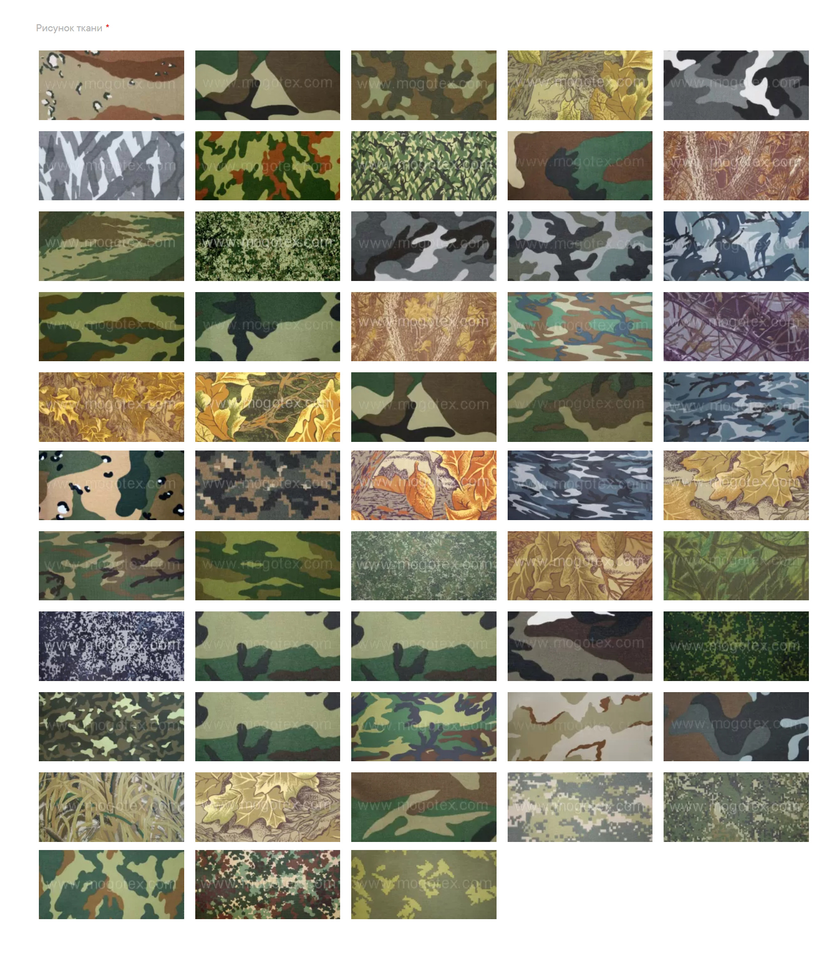 - Возможные варианты оформления: набивной рисунок, в т. ч. камуфляжный, крашение флуоресцентными красителями и гладкое крашение